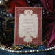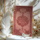 Diese exquisite Hochzeitseinladung vereint das Wesen der traditionellen muslimischen Ehe mit ihrem eleganten Spitzendesign in einer warmen, rubinen Farbe. Die zarten Feinheiten der Grenze bilden den Rahmen der Seite und führen das Auge zur heiligen islamischen Kalligraphie in der Mitte. Der altertümliche Pergament-Stil verleiht dem Ganzen ein Vintages Ambiente, während die verzierten Details an den Rändern mit der Pracht der klassischen muslimischen Kunst harmonieren. Die farbenfrohe Farbpalette verbrannter Orange mit Akzenten aus dunkler Terrakotta und subtiler Creme erinnert an einen Sonnenuntergang, der perfekt für einen Abend der Feier geeignet ist. Diese Einladung ist nicht nur ein Vorgeschmack auf die kommenden Nuptials, sondern auch ein Bewahrer kultureller Schönheit und Bedeutung.