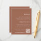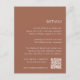 Diese kleine Details-Karte ist eine universelle Eintrittskarte für Ihre Hochzeitsfeier und bietet drei benutzerdefinierte Textfelder für Ihre Hochzeitsdetails, eine Website und einen QR-Code für RSVPs oder zusätzliche Informationen. Ein schlichtes typografisches Design mit minimalistischem Ambiente, klassisch weißes Schriftzeichen auf erdbraunem Büstenhintergrund.