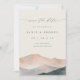 Set Sie den Ton für Ihren Hochzeitstag mit dieser rustikalen, eleganten Kollektion der Sierra Dusk von Redwood & Vine Design Co. Eine weiche Aquarelllandschaft in Blüte, Pfirsich und Schiefer erweckt die Schönheit eines Bergsonnenuntergangs, perfekt für Südwesten oder Wüsten inspiriert Hochzeiten. Moderne Typografie verleiht eine raffinierte Touch, während auf der Rückseite Platz für drei Fotos und personalisierte Details vorhanden ist. Ideal für Paare, die eine warme, neutrale Feier mit natürlicher Schönheit in der Mitte planen.