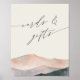 Das Schild "Karten & Geschenke" aus der Sierra Dusk Kollektion von Redwood & Vine Design Co. Dieses Schild ist mit sanftem Rock, Pfirsich und Schiefer Aquarellgebirge und moderner Schrift gestaltet und eignet sich ideal für Hochzeiten im Freien, für rustikale Veranstaltungen und Wüstenfeiern.