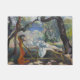 Dieses Design zeigt ein Gemälde des französischen Künstlers Henri Manguin (1874-1949), der mit der fauvistischen Kunstbewegung in Verbindung gebracht wurde. Es zeigt die Ehefrau des Künstlers Jeanne, der als häufiges Modell für seine Gemälde diente. Sie ist auf einem Holzstuhl unter dem Schatten eines Baumes in einem mediterranen Garten zurückgehalten. In der Ferne kann man die Häuser eines Badeortes sehen, neben dem Wasser. Die Frau ist entspannt in ihrer Haltung und sie erscheint in Ruhe, während sie schläft; sie steht dem Betrachter gegenüber. Ihre Augen sind geschlossen und ihre Beine überquert. Sie nimmt eine Erholung von der Mittagssonne und genießt eine typisch europäische Siesta. Die Umgebung um sie herum ist von mediterranem Licht durchflutet, die Lage ist Südfrankreich. Jeanne kann als Symbol für Ruhe, Weiblichkeit und die Freuden eines gemütlichen Zuhause-Lebens gesehen werden. Das Gemälde vermittelt Komfort und Leichtigkeit; es zelebriert die einfachen Freuden des normalen Lebens. Das Originalwerk wurde im selben Jahr gemalt wie der Salon d’Automne von 1905, wo Fauvismus zum ersten Mal in das öffentliche Bewusstsein ausbrach.