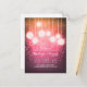 Romantische, skurrile und elegante Save the Date Postkarten mit Glamour-Laternen, die an den Leisten der Lichter hängen.Perfekt lila für modernes und dennoch altes Hochzeitsmotiv