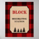 Blockdekoration Station Sign - mit rotem kariertem Lumberjack-Design für Ihre Babydusche.