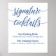 Signature Drink Hochzeit Zeichen blaue Kalligraphi Poster