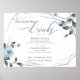 Dusty Blue Floral zu Ihrem Hochzeitstil, Signature Cocktail-Getränke für die Braut und Bräuche mit zusätzlichen Platz für Alternativen. Aquarellfarbene Rose, Blätter und Beeren in modernem schick staubblauem Blau umgeben einen geometrischen Terrarienstil silbernen Rahmen mit Salbei Grün. Anpassen von Text, Schriftart, Farbe und Größe. Original-Kunstwerk für die BarefootBride™ erstellt von © WhimsicalArtwork™ - Dies ist Teil einer kompletten Hochzeitsgeschosse-Suite mit passender Hochzeit, Babydusche und anderer Veranstaltungsbühne.