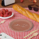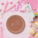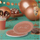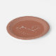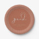 Signature-Skript "grad", Graduierung Partei Papier Teller. Weiße Typografie auf rostorangefarbenem Hintergrund mit zartem Deko-Musterrahmen.