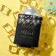 Eine elegante Schwarz-Gold-Gastgeschenk Hochzeit mit hübschen Saitenlichtern, stilvollen Signaturskriptnamen und einem besonderen Datum-Set in der modernen Typografie. Entwickelt von Thisisnotme©