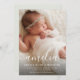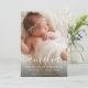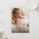 Diese elegante Geburt-Ankündigung aus dem Foto besticht durch ein großes Foto und eine hübsche Kalligraphie. Der Vorname Ihres Neugeborenen ist in einem modernen Skript geschrieben und weitere Details können weiter unten hinzugefügt werden. Der Text überlagert ein vertikal vollblutendes Foto. Die Farbe des neutralen hellgrauen Hintergrunds auf der Rückseite der Karte kann auf Wunsch geändert werden.