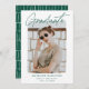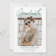 Trendy Abschlussfeier lädt mit dem Foto des Absolventen auf der Vorderseite gerahmt durch eine weiße raue Kante. "Graduate" wird in einer grünen Signatur mit dem Namen, dem Schulnamen und dem Abschluss des Absolventen angezeigt, wie unten gezeigt. Die moderne Graduierungsparty lädt die Reverses dazu ein, Ihre Graduiertendetails mit einem einzigartigen, grün-weiß gestanzten Linienhintergrund anzuzeigen. Diese Foto-Abschlussfeier lädt sowohl für Uni-Abschluss- als auch für Highschool-Partys ein.
