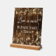 Signature Script Liebe ist Sweet Wood Rustic String Lights Table Sign - Dieses elegante braune Holz und weiße Tafelschild, mit schönen Saitenleuchten und weißem Blumen kann mit Ihren Hochzeitsdetails personalisiert werden (das Produkt ist nicht aus Holz).