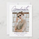 Trendy Abschlussfeier lädt mit dem Foto des Absolventen auf der Vorderseite gerahmt durch eine weiße raue Kante. "Graduate" wird in einem lila Signaturskript mit dem Namen, dem Schulnamen und dem Abschluss des Absolventen angezeigt. Die moderne Graduierungsparty lädt die Reverses dazu ein, Ihre Graduiertenpartien-Details mit einem lila-weiß gestanzten Linienhintergrund darzustellen. Diese Foto-Abschlussfeier lädt sowohl für Uni-Abschluss- als auch für Highschool-Partys ein.