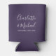 Eine elegante lila Gastgeschenk Hochzeit mit stilvollen Signaturskriptnamen und einem besonderen Set für das Datum in der modernen Typografie. Entwickelt von Thisisnotme©