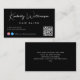 Eine schicke schwarze Visitenkarte mit Ihrem Namen oder Ihrer Marke, die in einem stilvollen weißen Signaturskript und Geschäftstyp in schlichter, moderner weißer Schrift präsentiert wird. Geben Sie Ihre Website-Adresse ein, um einen QR-Code für Kunden und Kunden zu erstellen, um nach einer Liste Ihrer Produkte, Dienstleistungen, Stunden usw. zu suchen, und fügen Sie Ihre Instragram und Facebook-Benutzer-ID für Kunden, um Sie auf sozialen Medien zu verfolgen. Sie können zusätzliche Informationen auf der Rückseite hinzufügen oder leer verlassen.