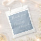 Eine elegante Hochzeitsfeier danke Ihnen für die Tasche. Personalisiert mit Ihrem besonderen Dankeschön an Sie Nachricht Set in stilvoller Typografie auf einem staubblauen Hintergrund. Sie können den Hintergrund an Ihre Lieblingsfarbe anpassen. Ein besonderes Dankeschön für Ihre Gäste. Entwickelt von Thisisnotme©