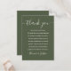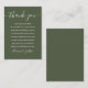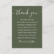 Eine elegante Hochzeitsfeier danke Ihnen Empfang Card Set. Personalisiert mit Ihrem besonderen Dankeschön Nachricht Set in stilvoller Typografie auf einem olivgrünem Hintergrund. Sie können den Hintergrund an Ihre Lieblingsfarbe anpassen. Ein besonderes Dankeschön für Ihre Gäste. Entwickelt von Thisisnotme©
