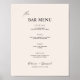 Dieses DIY bedruckbare Hochzeitsmenü mit eigenem Schriftart und modernem minimalistischem Design. Diese Minimalistische Vorlage für das Bar von Hochzeiten ist ideal für Sie, wenn Sie hübsche und leicht zu bedienende, editierbare Hochzeitssignaturen suchen.