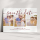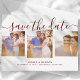 Signaturskript Drei Fotos Maroon Save the Date Ankündigungspostkarte