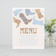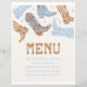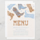 Signieren des Party-Menüs von 8x10 Western. Dieses Schild wird auf 8,5x11" schweres weißes Karton gedruckt. Sie schneiden den weißen Rand ab, um die Größe 8x10" zu erhalten. Sie können das Schild so rahmen oder anzeigen, wie Sie möchten.