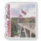Celebrate the charm of Sigulda, Latvia, with this elegant travel photo sticker featuring The Bridge over Gauja River in Sigulda. The bridge in the summer / national holiday season is decorated with many Latvian flags, making the view even more spectacular.