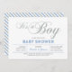 Feiern Sie einen besonderen Tag für Ihren Liebsten mit dieser modernen Baby Dusche Einladung! Dieses Design bietet eine stilvolle Typografie " It's a Boy " in Glitzer silber Textur & soft blue.
