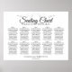 Machen Sie Ihren Hochzeitsempfang mit diesem Sitzplan schön. Als Teil unserer Silver Foil Elegant Wedding Suite ist es ein schlichtes und elegantes Design mit schwarzem Text auf weißem Hintergrund mit einem silberfarbenen Imitat-Rahmen. Dieses Diagramm zeigt die Tabellenzuordnungen, damit Ihre Gäste den richtigen Tisch leicht finden können.