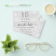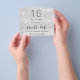 Bitte beachten Sie, dass dies Save the Date auf Flyer Papier und sehr dünn ist. Umschläge sind nicht enthalten. Für eine dickere Save the Date Karte (das gleiche Design) besuchen Sie bitte unseren Shop. Eine junge und trendige Save the Date für eine 18. Geburtstagsfeier. Ein modernes Imitat silber aussehender Hintergrund mit Imitat Glitzer, Glitzern. Personalisieren und fügen Sie Datum und Name/Alter hinzu. Graue Buchstaben. Der Text: Save the Date ist mit einem großen angesagten, handgeschriebenen Stilskript geschrieben. Nummer 18 mit einem Schriftart im Ballonstil.
