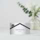 Ein silbernes Imitat mit einem abstrakten, schwarzen Haus/Dach. Personalisieren und fügen Sie Ihren Namen und Text auf der Vorderseite. Zurück: Vorlagen für Ihren Namen, Titel, Telefonnummer, E-Mail- und Website-Adresse, QR-Code für Ihre Website oder Ihr Social-Media-Konto.
