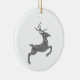 Desteis digital geschaffene Springhirschform in Imitaten silbergrauer Glitzer Textur. Auf der anderen Seite gibt es zwei personalisierbare Textbereiche. BITTE BEACHTEN SIE: Das Design ist ein digital erstelltes Bild, das auf dem Produkt gedruckt wird.
