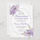 Silber geometrische Rahmen und Glitzer Konfetti Typografie Quinceañera Geburtstag mit handgemalten grünen Aquarellblättern, lila Lavendel-Blume, perfekt für Frühjahr und Sommer Mis Quince Geburtstagsparty mit einer silbernen Prinzessin tiara Krone.