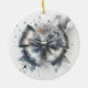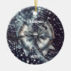Dieses charmante Urlaubsornament zeigt ein coquettisches silbernes Set aus metallischem Bugbogen vor einem strahlenden schwarzen Hintergrund mit Punkten und sanfter Beleuchtung und hebt das Jahr in einem weißen Schriftart hervor. Diese schicke, von Bogen inspiriert Dekoration bringt jedem Weihnachtsbaum ein Stück Eleganz. Die Rückseite ist ebenfalls mit dem metallischen Bogen und einer Wasserfarbenkaskade geschmückt.