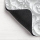Eine Kollektion von aufwändig gestaltetem, silbergrauem Papier, das dunkle Blume und wirbelnde Motive auf weißem Hintergrund abhält.