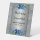 Silber schimmern: Blau-Blumen-Brautparty Sockelschild
