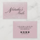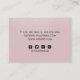Silberschimmer-Glitzer-Staub verleiht dem rosa Hintergrund eine subtile Glasur. Ihre Kontaktdaten wie Telefon, E-Mail, Website und Social Media Handle sind auf der Rückseite. Klicken Sie auf 'Pesonalize', um Ihre Daten hinzuzufügen. Sie können weiter anpassen, indem Sie auf den Link "Klicken, um weitere anzupassen" unten im Feld Personalisieren klicken und das Design-Tool verwenden, um Symbole für soziale Medien, die Sie nicht verwenden, zu entfernen und Icons, falls erforderlich, neu positionieren.
