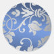 Silber- und Blauer Damast-Design Runder Aufkleber