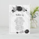 elegante silbergraue und schwarze Blume Sitzkarte Tischnummer Karte Die Glitzer Details werden simuliert