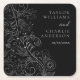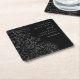 Dieser elegante Untersetzer besticht durch ein zartes blumengeschmücktes Design mit Blume, Vögeln und Blätter auf silberfarbenem und schwarzem Hintergrund. Der Text kombiniert handgeschriebene Skript- und Serif-Schriftart für ein stilvolles und modernes Aussehen. Ideal für eine Hochzeit im Herbst im Winter oder Herbst.
