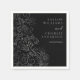 Diese elegante Hochzeitsserviette besticht durch ein zartes Blumendesign mit Blume, Vögeln und Blätter auf silberfarbenem und schwarzem Hintergrund. Der Text kombiniert handgeschriebene Skript- und Serif-Schriftart für ein stilvolles und modernes Aussehen. Ideal für eine Hochzeit im Herbst im Winter oder Herbst.