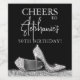 Elegante und schicke Moderne Silber und Schwarz Personalisiert Geburtstag Wein Flasche Custom Labels mit Imitat Glitzer Silver High Heel Stiletto Schuhe und individuelle Name Kalligraphie-Drehbuch kursiv in Schwarz-Weiß mit "Cheers" zu Geburtstagsnamen jedes Jahr Geburtstagsfeier!