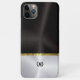 Die Kombination aus schimmerndem Silber und glänzender schwarzer Metallstruktur. Gold Texturlinie als Akzent. Optionales Monogramm.