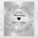 Elegantes silbergraues Blumendekor auf silberfarbenem Hintergrund und schwarzes Herz in der Mitte. Jahrestag kann geändert werden