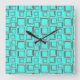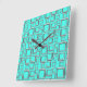 Ummauern Sie quadratische Uhr mit dem Retro Muster, das von den silbernen Quadraten auf Türkishintergrund gemacht wird