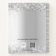 Imitate silberfarbener Hintergrund mit weißen Blumen, Blume, Eukalyptusgrün und Imitaten silberne Glitzer, Glitzern. Personalisieren und ein Jahr, Name und Titel/Text
