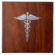 Silber wie Caduceus Medical Symbol Mahogany Print Fliese