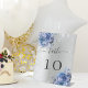 Silberblaue Blumen Hochzeitsfeier Tischnummer Sockelschild