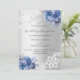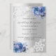 Für eine elegante und romantische Hochzeit. Ein silbernes Imitat mit blauen Blumen, Rose und weißer Spitze. Personalisieren Sie Ihre Namen und Details und fügen Sie diese hinzu.