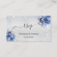 Ein Imitat silber aussehender Hintergrund mit hellblauen Imitaten Glitzer, Glitzern und blauen Blumen, Blume. Personalisieren und fügen Sie Ihre Namen, Hochzeitwebsite url für Ihre eigenen QR-Code und Text.
