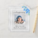 Ein elegantes zweiseitiges Programm. Ein Imitat silberer Hintergrund, ein weißer Rahmen, blaue Vergessenme-nicht-Blumen und Platz für ein Foto. Personalisieren und hinzufügen von Namen, Daten und Text.