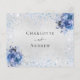Ein Imitat silber metallisch aussehender Hintergrund, dekoriert mit glitzernden hellblauen Imitaten Glitzer Glitzern und blauen Blumen, Blume. Personalisieren und fügen Sie die Antwort nach Datum und Ihren Namen.