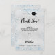 Imitat silber aussehender Hintergrund, mit hellblauen Imitaten Glitzer, Glitzern. Große handgeschriebene Skripte mit Swashes und den Text: Danke. Personalisieren Sie und fügen Sie Ihren Dankeschön Hinweis und Name, Schulname.