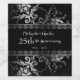 Eleganter silberner Damast und Spitze über schwarzem Hintergrund. Silberherzen und Goldherzen. 25. Jahrestag
